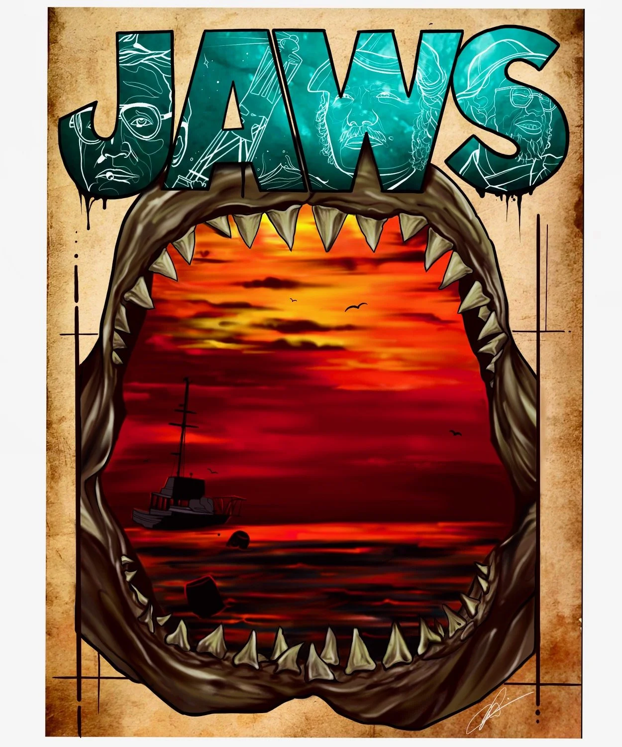 CHRIS’S PAINTING IN THE 50TH ANNIVERSARY OF JAWS BOOK